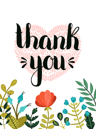 手文字と白い背景でかわいいフローラル リースありがとうカード ベクトルありがとうカードのイラスト素材 ベクタ Image