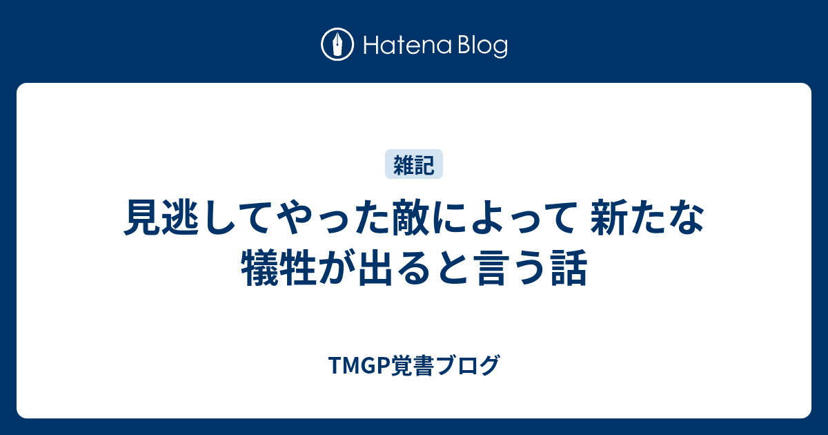 見逃してやった敵によって 新たな犠牲が出ると言う話 Tmgp覚書ブログ